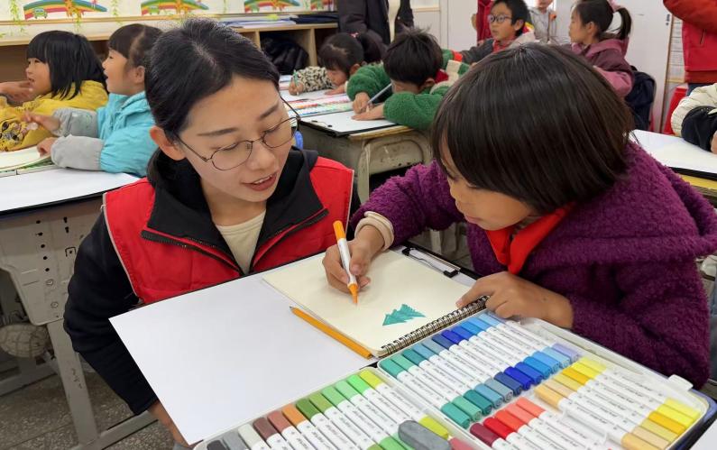 当屏幕暗下,那些来自远方的画作仿佛仍停留在孩子们眼前。“你想成为什么样的人?想去哪里?想画什么?”老师轻声问。教室里安静下来,只听见画笔划过纸张的沙沙声。花朵与大树、家乡的院落、遨游在大海里的鱼儿……那些尚未说出口的向往,被孩子们一点点描绘出来,在画纸上安静生长。
