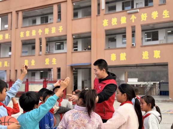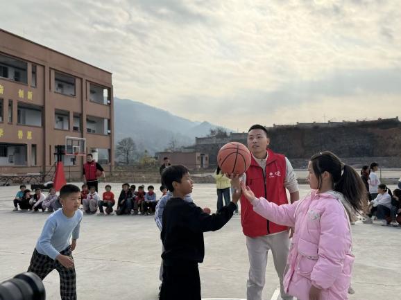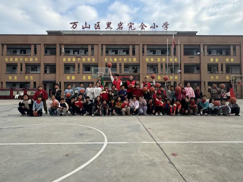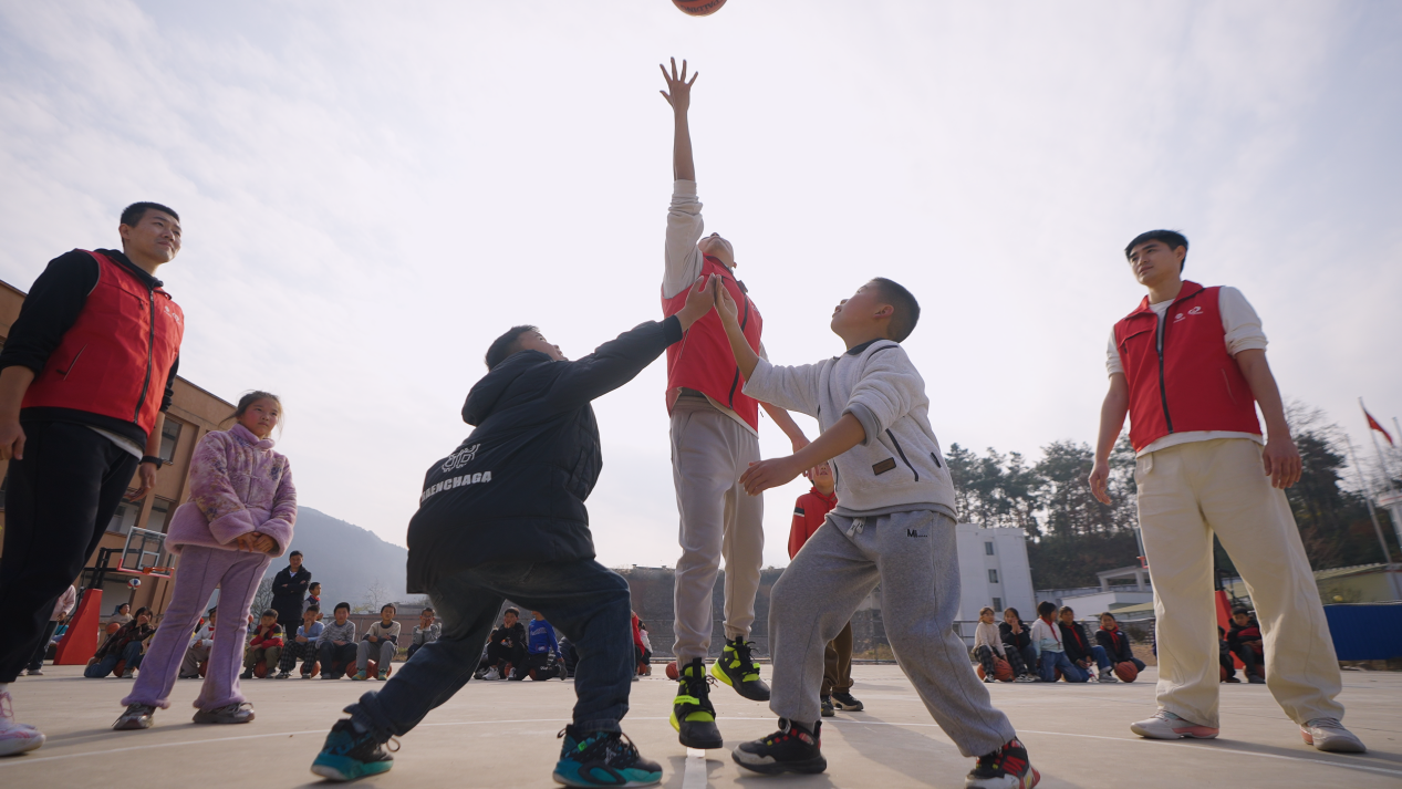 很快,孩子们被分成“勇士队”和“必胜队”,一场友谊赛正式开始。奔跑、传球、投篮间,笑声不断。有人摔倒,立刻有人伸手拉起;有人进球,全场齐声欢呼。最终,必胜队赢得了比赛,而志愿者们与孩子们一同奔跑在操场上,把陪伴写进了每一次传球与击掌之中。