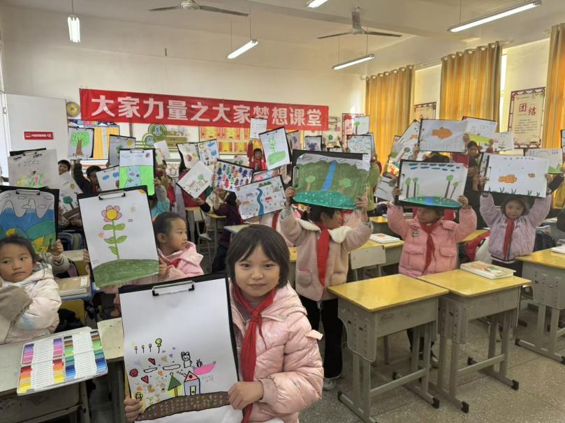 捐赠仪式结束后,以“大自然中的生命”为主题的新一期大家梦想课堂正式开课。教室里,孩子们拿到崭新的画笔与画纸,小心翼翼地摆放在桌前,目光中满是期待。