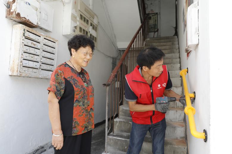 作为老城区的典型社区,乔虹苑社区的60岁以上长者占比超过三分之一,上下楼难、跌倒风险高等问题长期困扰他们的日常生活。“大家力量”精准洞察这一迫切需求,携手专业公益伙伴,联合政府与社区多方力量,将“爱心扶手捐赠”确立为本次公益行动的核心,共同推动适老化服务体系在基层落地。