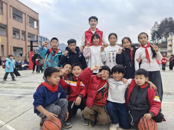 很快,孩子们被分成“勇士队”和“必胜队”,一场友谊赛正式开始。奔跑、传球、投篮间,笑声不断。有人摔倒,立刻有人伸手拉起;有人进球,全场齐声欢呼。最终,必胜队赢得了比赛,而志愿者们与孩子们一同奔跑在操场上,把陪伴写进了每一次传球与击掌之中。